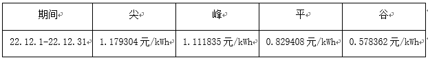 根据望京SOHO大厦实际用电情况,现将2022年12月1日-2022年12月31日电费单价按照尖、峰、平、谷进行公示,具体如下表所示: