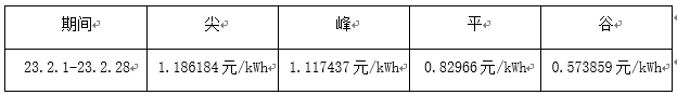 根据望京SOHO大厦实际用电情况,现将2023年2月1日-2023年2月28日电费单价按照尖、峰、平、谷进行公示,具体如下表所示: