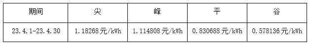 根据望京SOHO大厦实际用电情况,现将2023年4月1日-2023年4月30日电费单价按照尖、峰、平、谷进行公示,具体如下表所示: