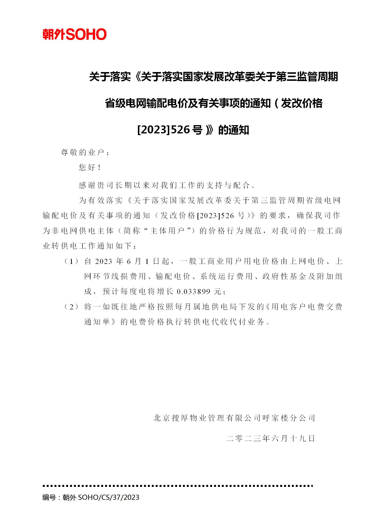 关于落实《关于落实国家发展改革委关于第三监管周期 省级电网输配电价及有关事项的通知(发改价格[2023]526号)》的通知