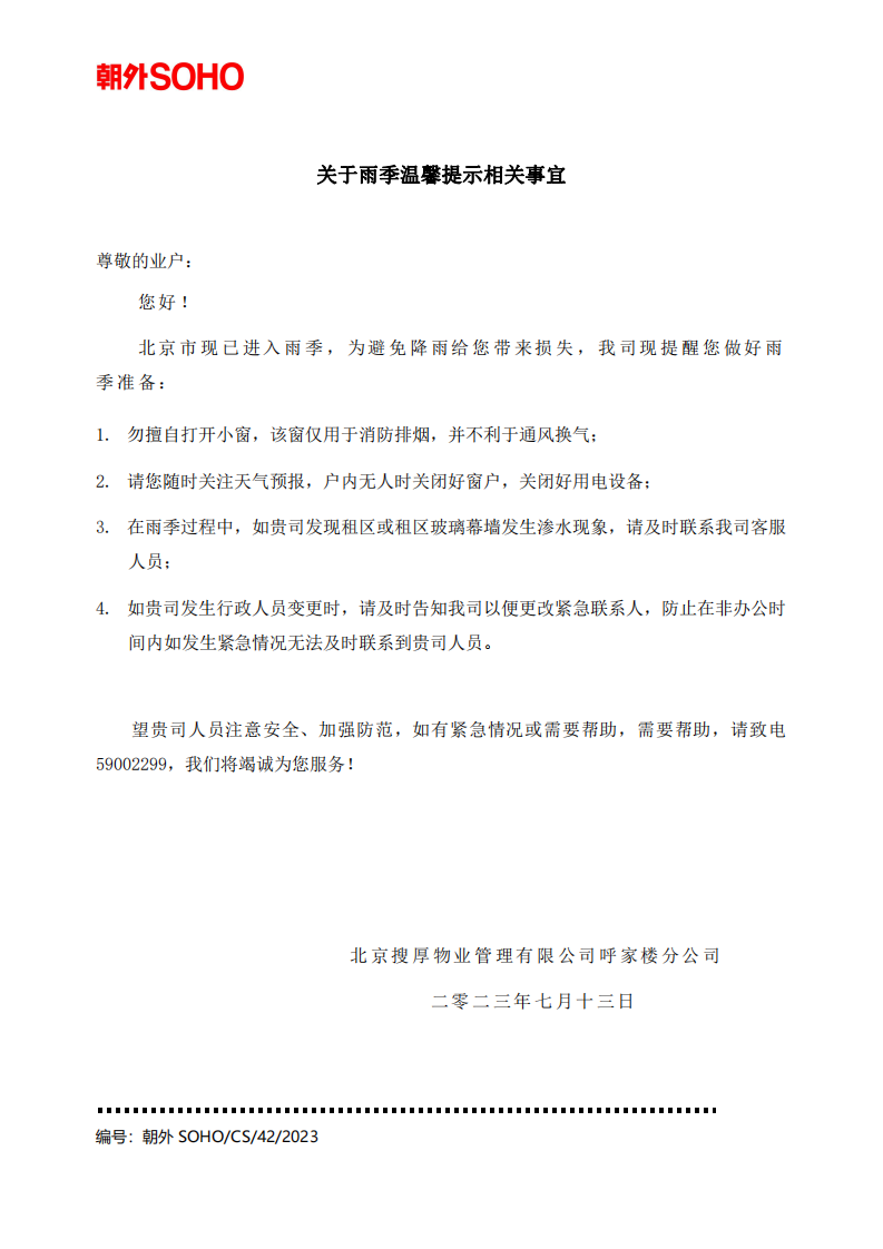 关于雨季温馨提示事宜2023.7.14