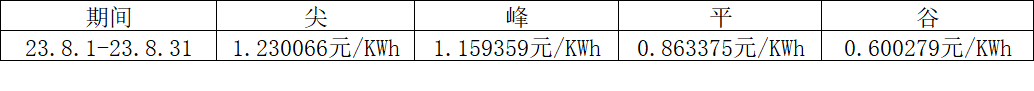 根据银河SOHO大厦实际用电情况,现将2023年8月1日---2023年8月31日电费单价按照尖、峰、平、谷进行公示,具体如下表所示: