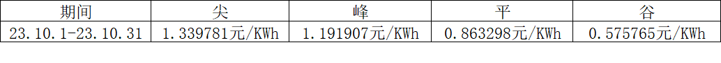 根据银河SOHO大厦实际用电情况,现将2023年10月1日---2023年10月31日电费单价按照尖、峰、平、谷进行公示,具体如下表所示:
