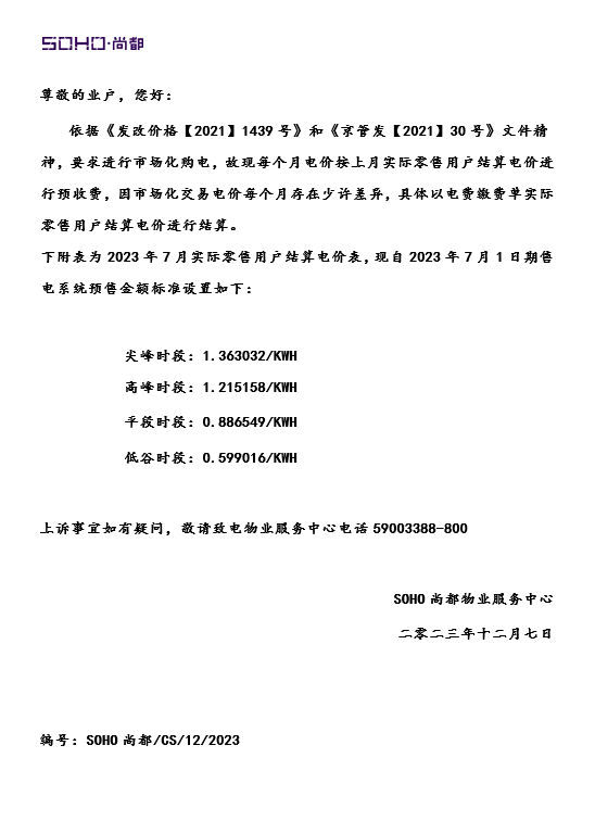 关于一般工商业电费下调有关事宜的通知