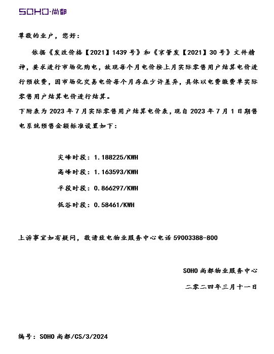 关于一般工商业电费下调有关事宜的通知