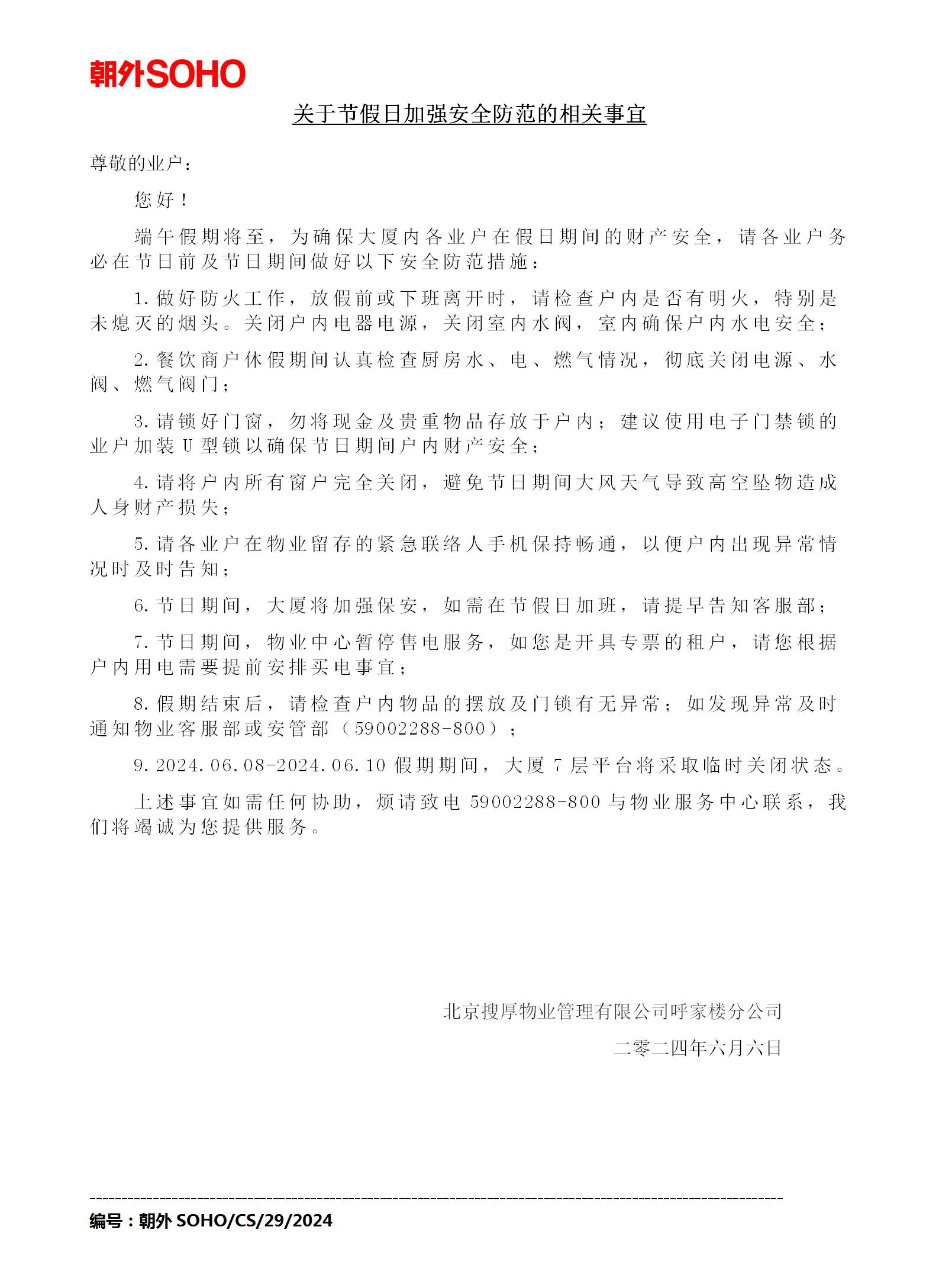 关于节假日加强安全防范的相关事宜