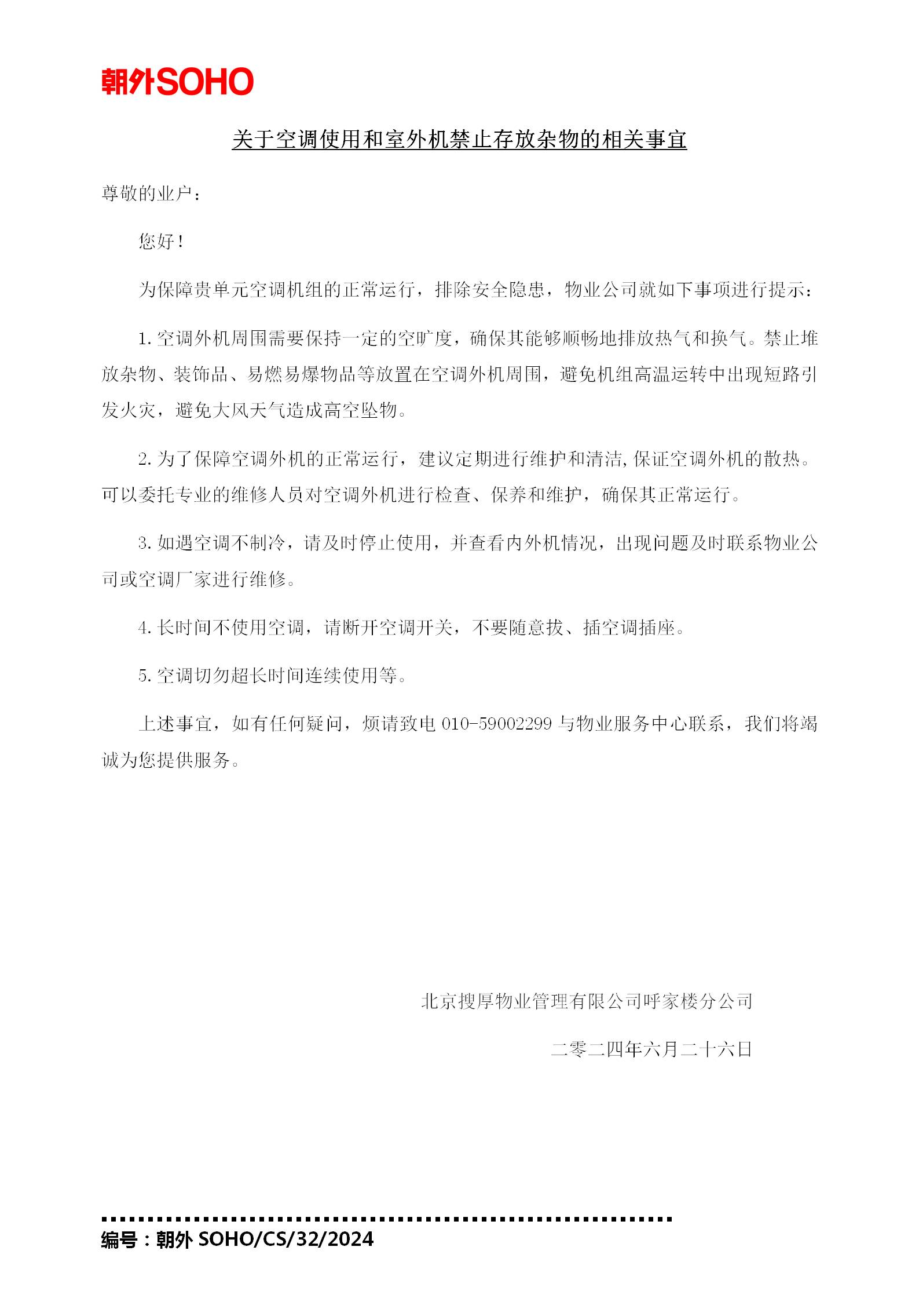 关于空调使用和室外机禁止存放杂物的相关事宜