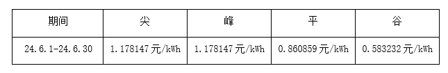 根据望京SOHO大厦实际用电情况,现将2024年6月1日-2024年6月30日电费单价按照尖、峰、平、谷进行公示,具体如下表所示: