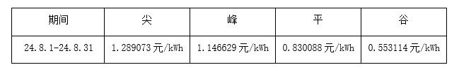 根据望京SOHO大厦实际用电情况,现将2024年8月1日-2024年8月31日电费单价按照尖、峰、平、谷进行公示,具体如下表所示: