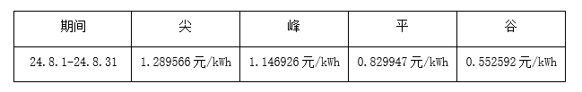 根据望京SOHO大厦实际用电情况,现将2024年8月1日-2024年8月31日电费单价按照尖、峰、平、谷进行公示,具体如下表所示: