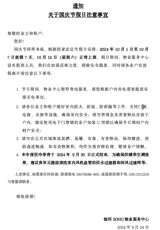 关于国庆节假日注意事宜