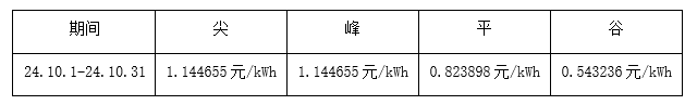 根据望京SOHO大厦实际用电情况,现将2024年10月1日-2024年10月31日电费单价按照尖、峰、平、谷进行公示,具体如下表所示: