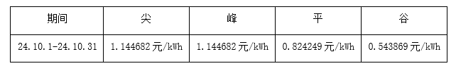 根据望京SOHO大厦实际用电情况,现将2024年10月1日-2024年10月31 日电费单价按照尖、峰、平、谷进行公示,具体如下表所示: