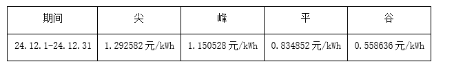 根据望京SOHO大厦实际用电情况,现将2024年12月1日-2024年12月31日电费单价按照尖、峰、平、谷进行公示,具体如下表所示: