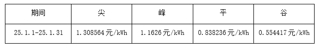 根据望京SOHO大厦实际用电情况,现将2025年1月1日-2025年1月31日电费单价按照尖、峰、平、谷进行公示,具体如下表所示:
