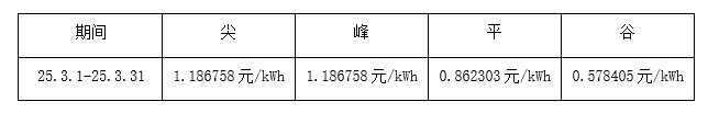 根据望京SOHO大厦实际用电情况,现将2025年3月1日-2025年3月31日电费单价按照尖、峰、平、谷进行公示,具体如下表所示: