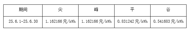 根据望京SOHO大厦实际用电情况,现将2025年6月1日-2025年6月30日电费单价按照尖、峰、平、谷进行公示,具体如下表所示: