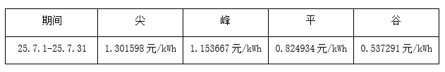 根据望京SOHO大厦实际用电情况,现将2025年7月1日-2025年7月31日电费单价按照尖、峰、平、谷进行公示,具体如下表所示: