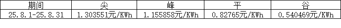 根据朝阳门SOHO大厦实际用电情况,现将2025年8月1日---2025年8月31日电费单价按照尖、峰、平、谷进行公示,具体如下表所示: