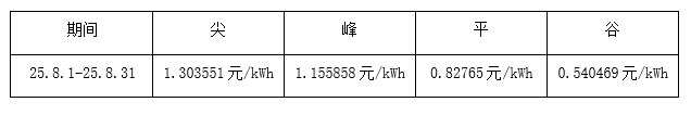根据望京SOHO大厦实际用电情况,现将2025年8月1日-2025年8月31日电费单价按照尖、峰、平、谷进行公示,具体如下表所示: