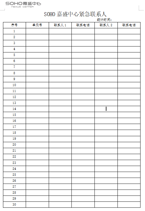 4. 请贵司在本中心备存放假期间的紧急联络人资料,后附相关表格填写信息。