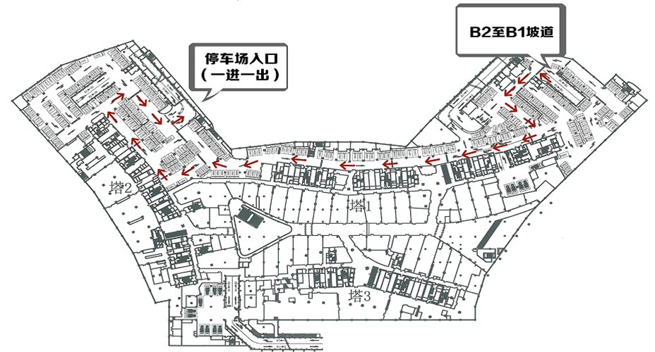 驶入地库车辆按原路线行驶,驶离地库车辆请按图示方向驶离,如遇双向车辆,烦请相互错车,由此给您带来的不便,敬请谅解。