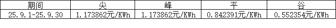 根据朝阳门SOHO大厦实际用电情况,现将2025年9月1日---2025年9月30日电费单价按照尖、峰、平、谷进行公示,具体如下表所示: