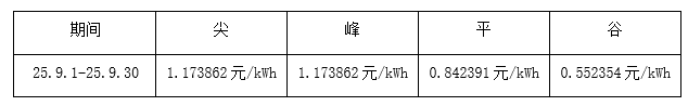 根据望京SOHO大厦实际用电情况,现将2025年9月1日-2025年9月30日电费单价按照尖、峰、平、谷进行公示,具体如下表所示:
