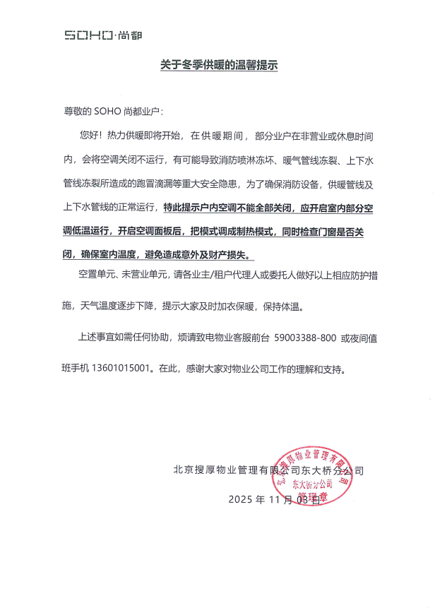 关于冬季供暖的温馨提示