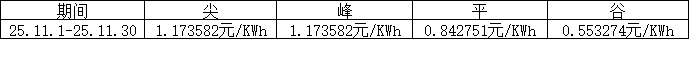根据朝阳门SOHO大厦实际用电情况,现将2025年11月1日---2025年11月30日电费单价按照尖、峰、平、谷进行公示,具体如下表所示: