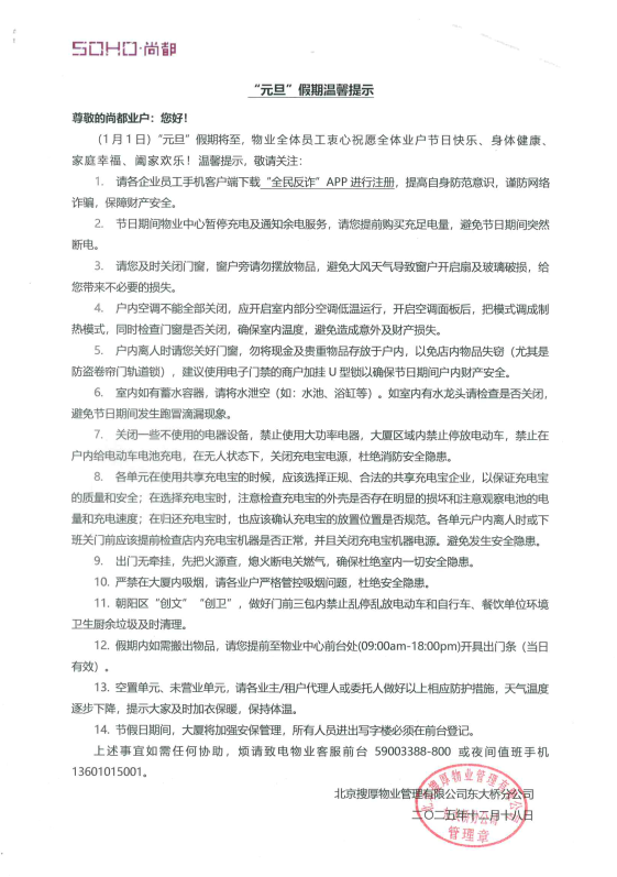 “元旦”假期温馨提示