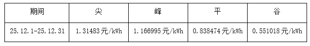 根据望京SOHO大厦实际用电情况,现将2025年12月1日-2025年12月31日电费单价按照尖、峰、平、谷进行公示,具体如下表所示:
