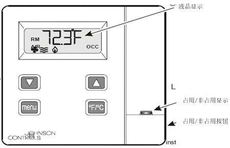 ü 温度设定:在占用模式下,按下MENU按钮,当看见温度显示闪烁时,可以按向下或向上箭头设置系统工作温度,以调节室温。