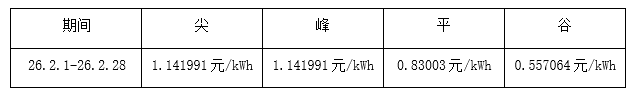 根据望京SOHO大厦实际用电情况,现将2026年2月1日-2026年2月28日电费单价按照尖、峰、平、谷进行公示,具体如下表所示: