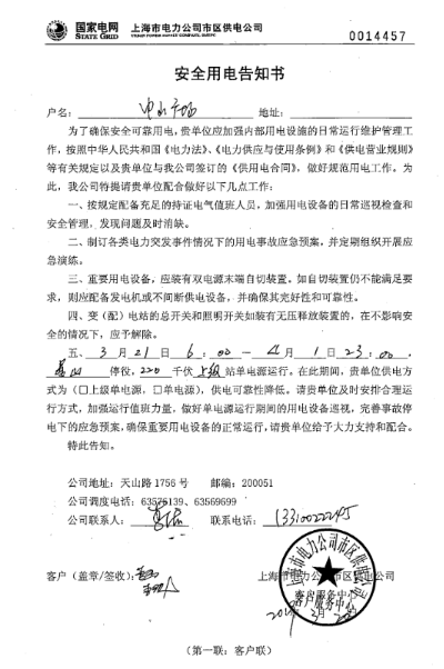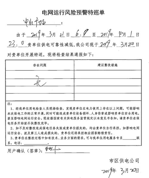 另附:电力公司运行风险预警告知单、安全用电告知书