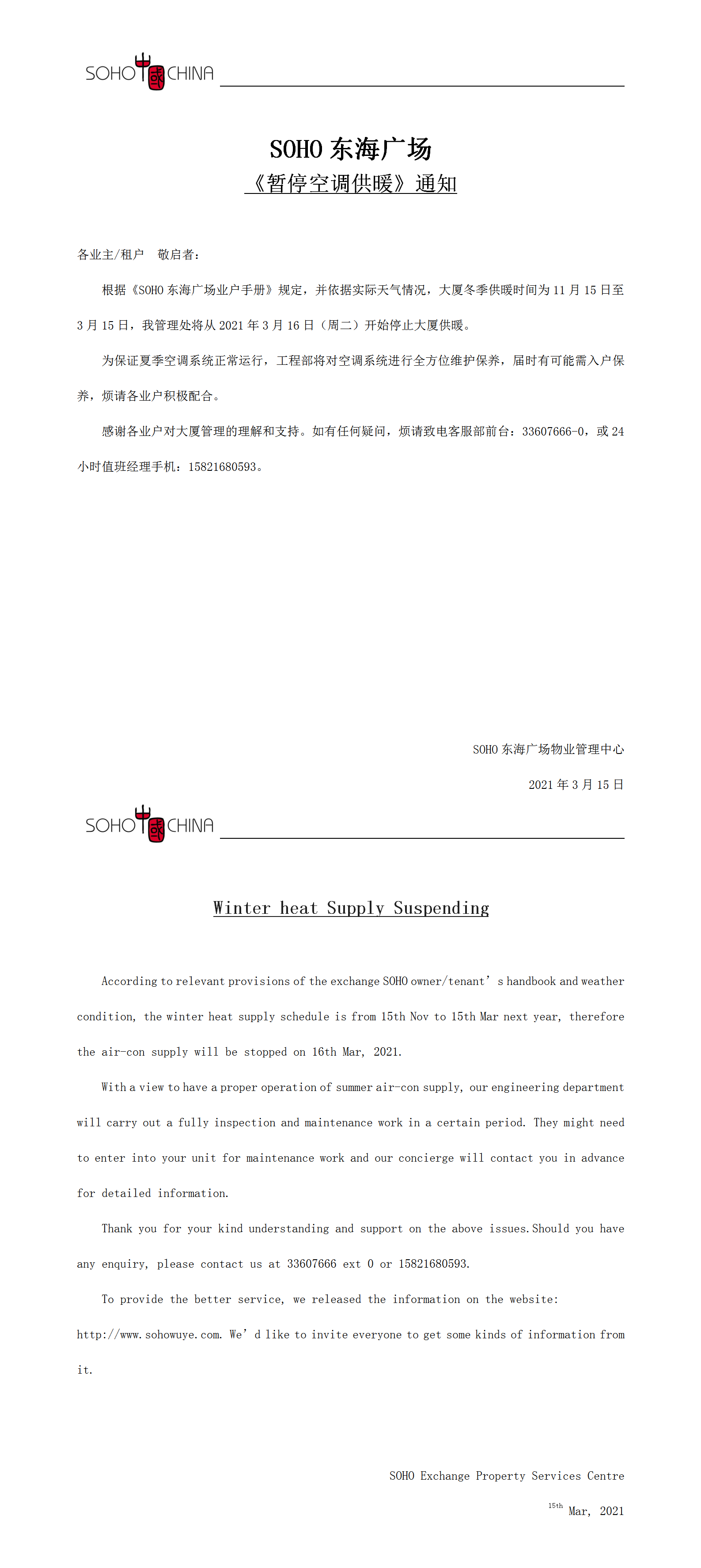 关于《暂停空调供暖》通知