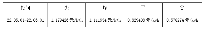 根据望京SOHO大厦实际用电情况,现将2022年5月1日---2022年6月1日电费单价按照尖、峰、平、谷进行公示,具体如下表所示: