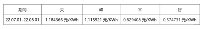根据光华路SOHO2实际用电情况,现将2022年7月1日——2022年8月1日电费单价按照尖、峰、平、谷进行公示,具体如下表所示: